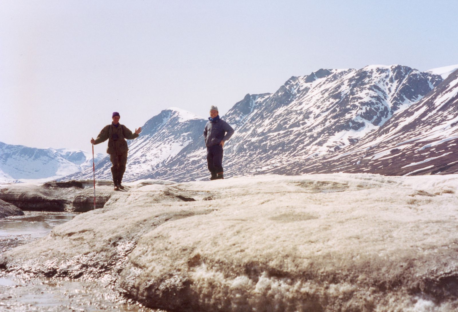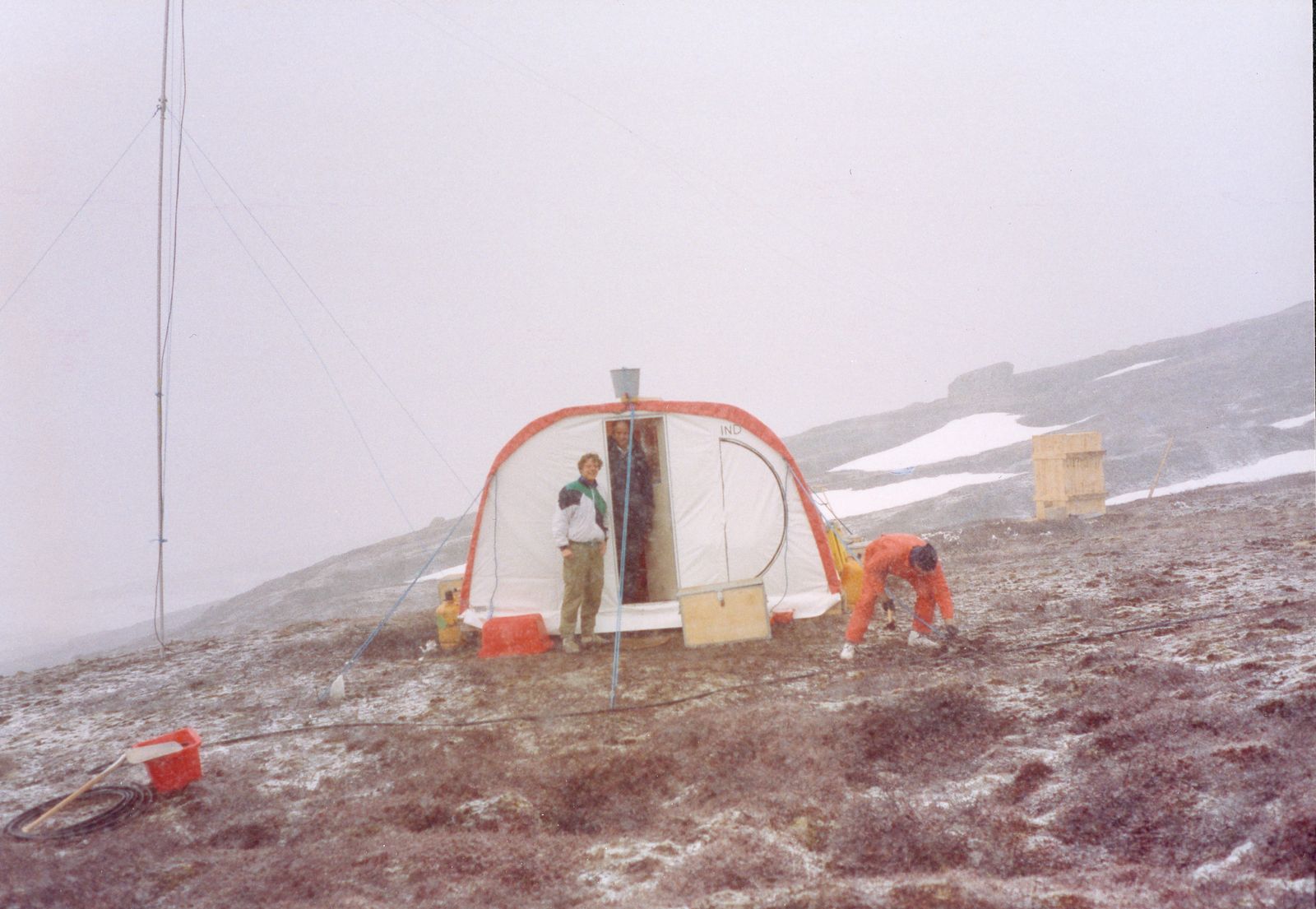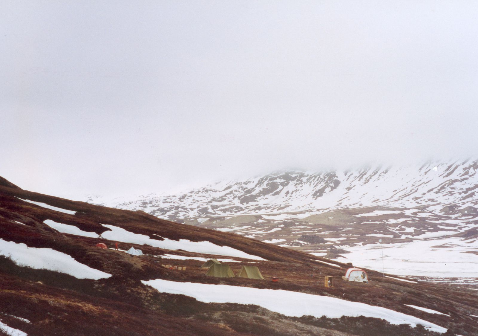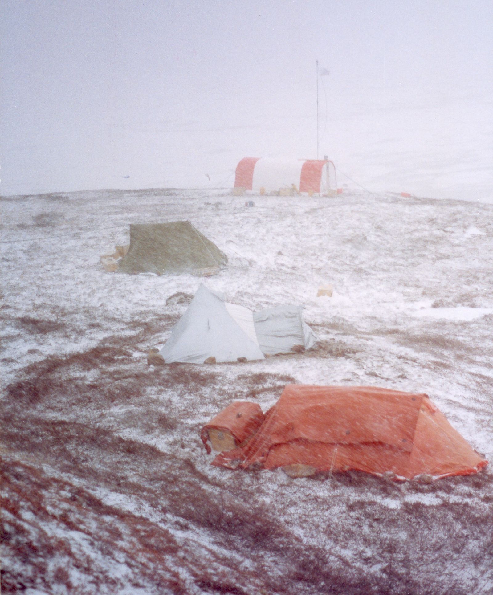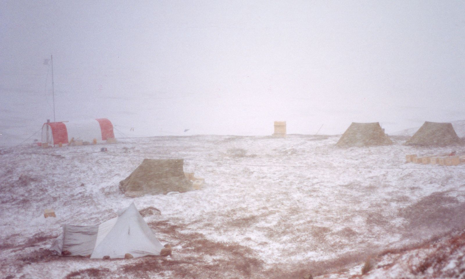 I slutningen af juni blev det snestorm. Det var rigtigt slemt, men heldigvis blev ingenting ødelagt. Vores kantinetelt og WC blev helt fyldt op med sne. Om natten var der så meget tryk på at min telt midter stang bevægede sig over en halv meter fra side til side. Men teltet holdt.