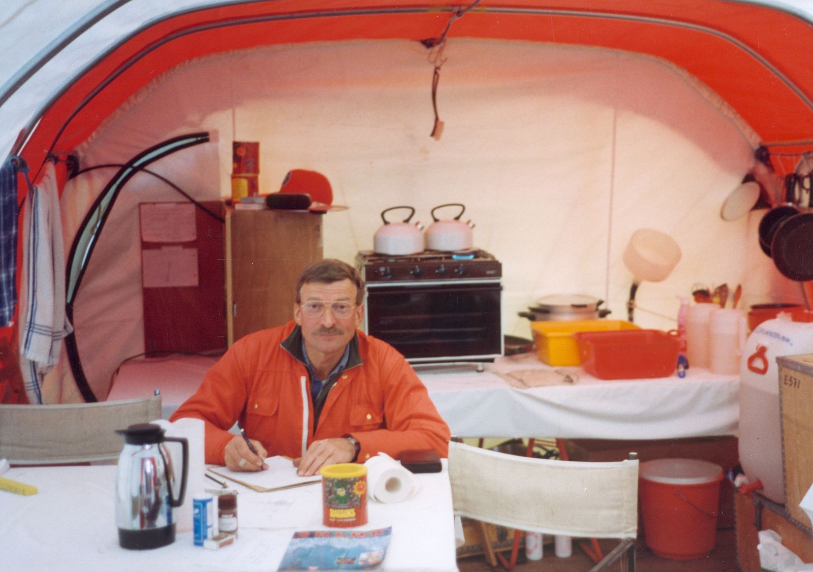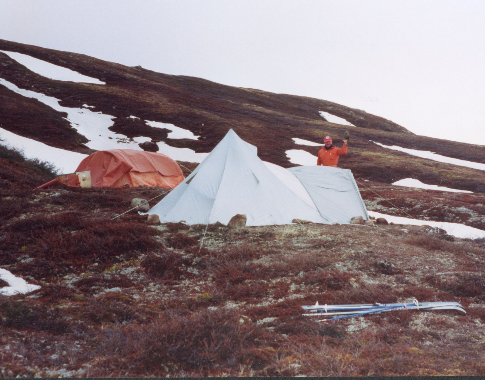 Jeg havde lånt mine forældres telt. Det var meget sjovt at prøve – vi fik fragtet alt udstyr med en Sikorsky helikopter.